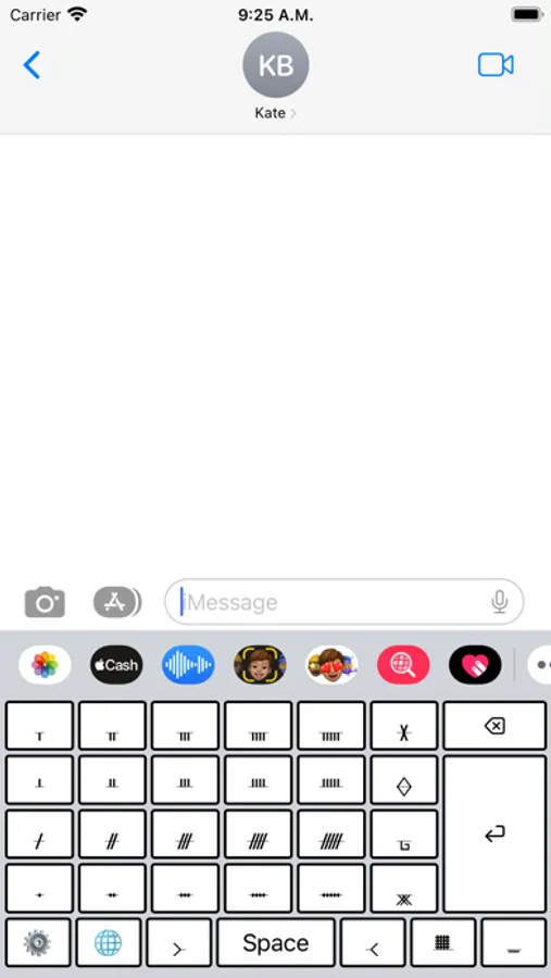 When using an app, the iPhone/iPad will show a Globe icon or button at the bottom. By holding on it, you can choose which keyboard you want to use. Select Ogham Input and start writing with runes!