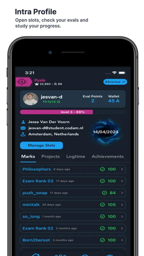 IntraOS is a mirror of the 42 intranet, here a list with some of the features: