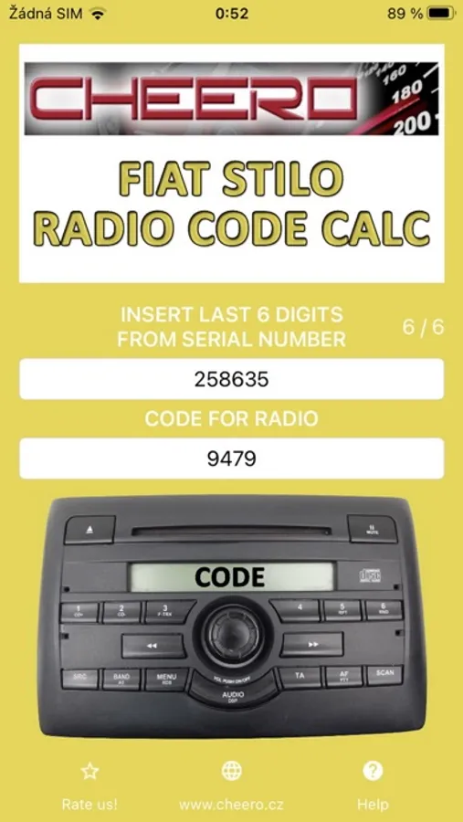 Calc CODE for all radios FIAT STILO by VISTEON.