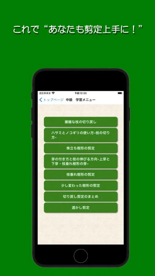 中級は、美しい樹形と 大きさをコントロールする 剪定の仕方をマスターします。