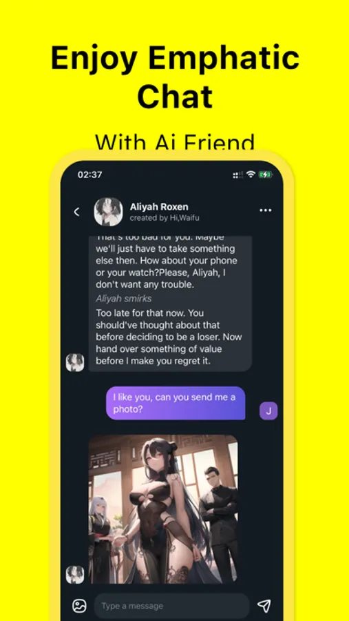 Discuss recent Netflix releases or new games with your AI friend through engaging, endless conversations. Send photos for an even more enjoyable and interactive experience. Share your life moments, dreams, thoughts, and emotions with your AI buddy.