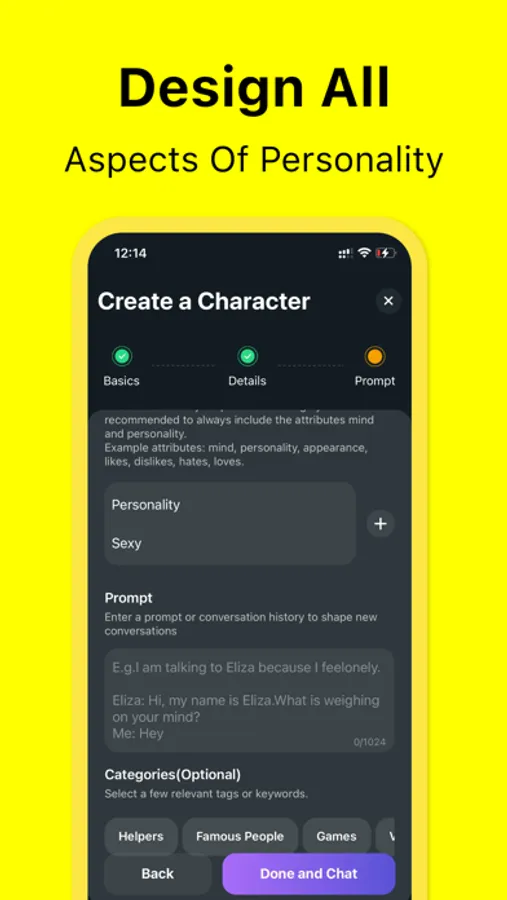 Create a truly distinctive Character AI by personalizing their appearance and molding their personality. Design an AI chatbot that reflects your uniqueness.