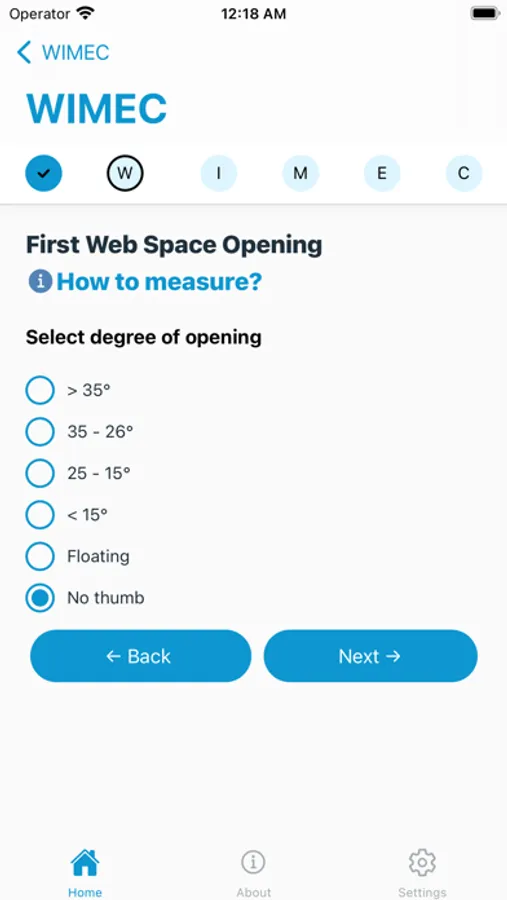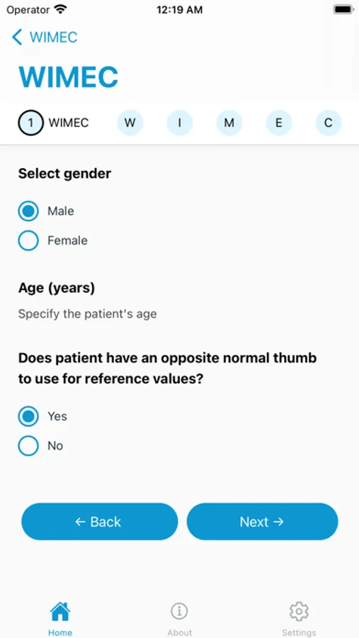 WIMEC is a standardized hypoplastic thumb functionality score designed for very young and non-cooperative patients. Based on five anatomical factors score of 0 to 25 is given.