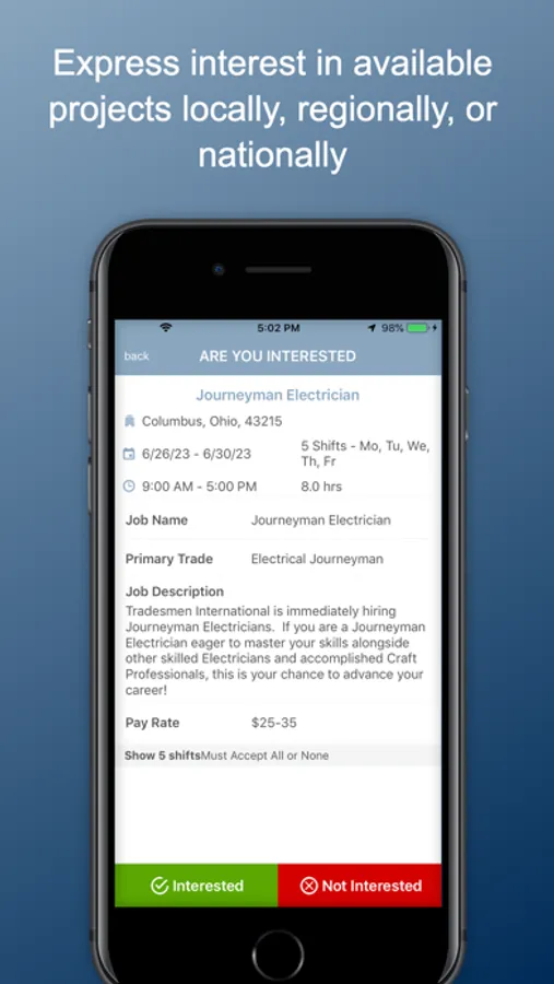 * Have easier, faster communication with your Tradesmen office and recruiter
