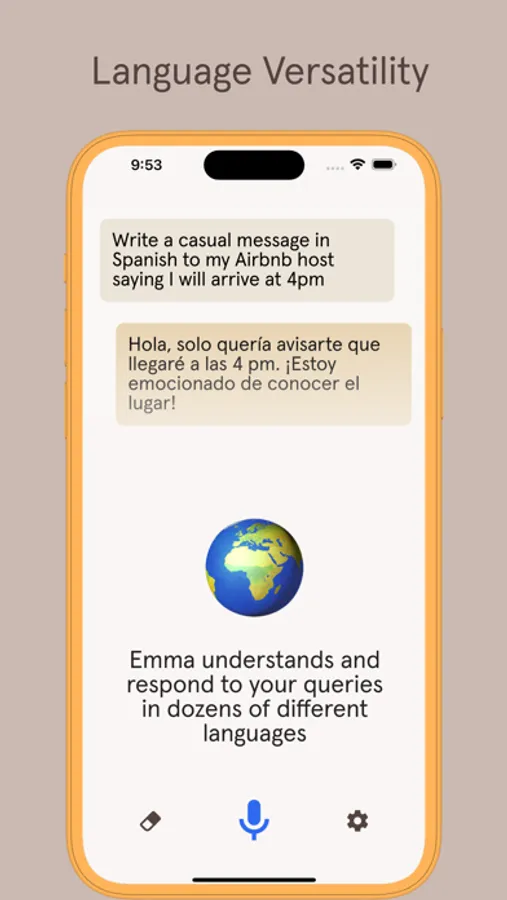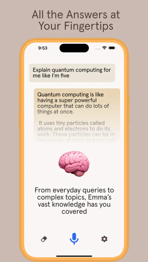 Voice Recognition: Effortlessly ask questions using your natural voice, and Emma will quickly transcribe and understand your query.