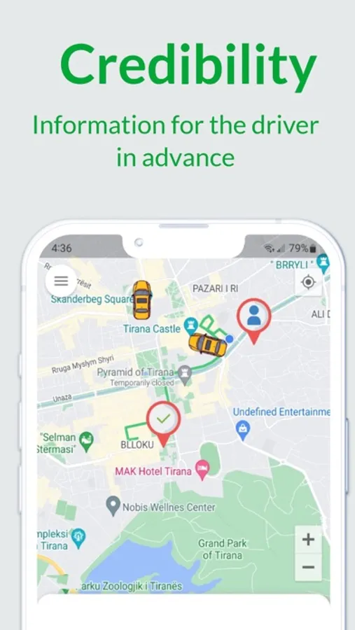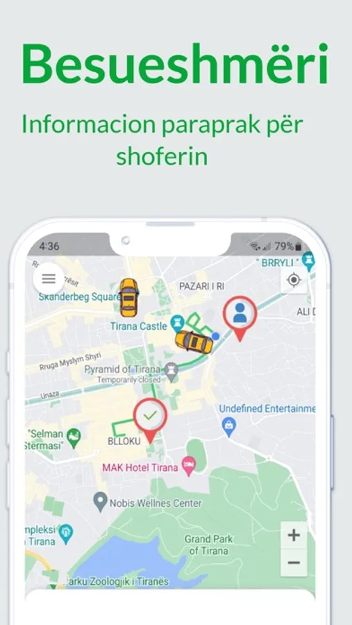 g. Ti mund te ndjekesh ardhjen e taksise ne kohe reale.
