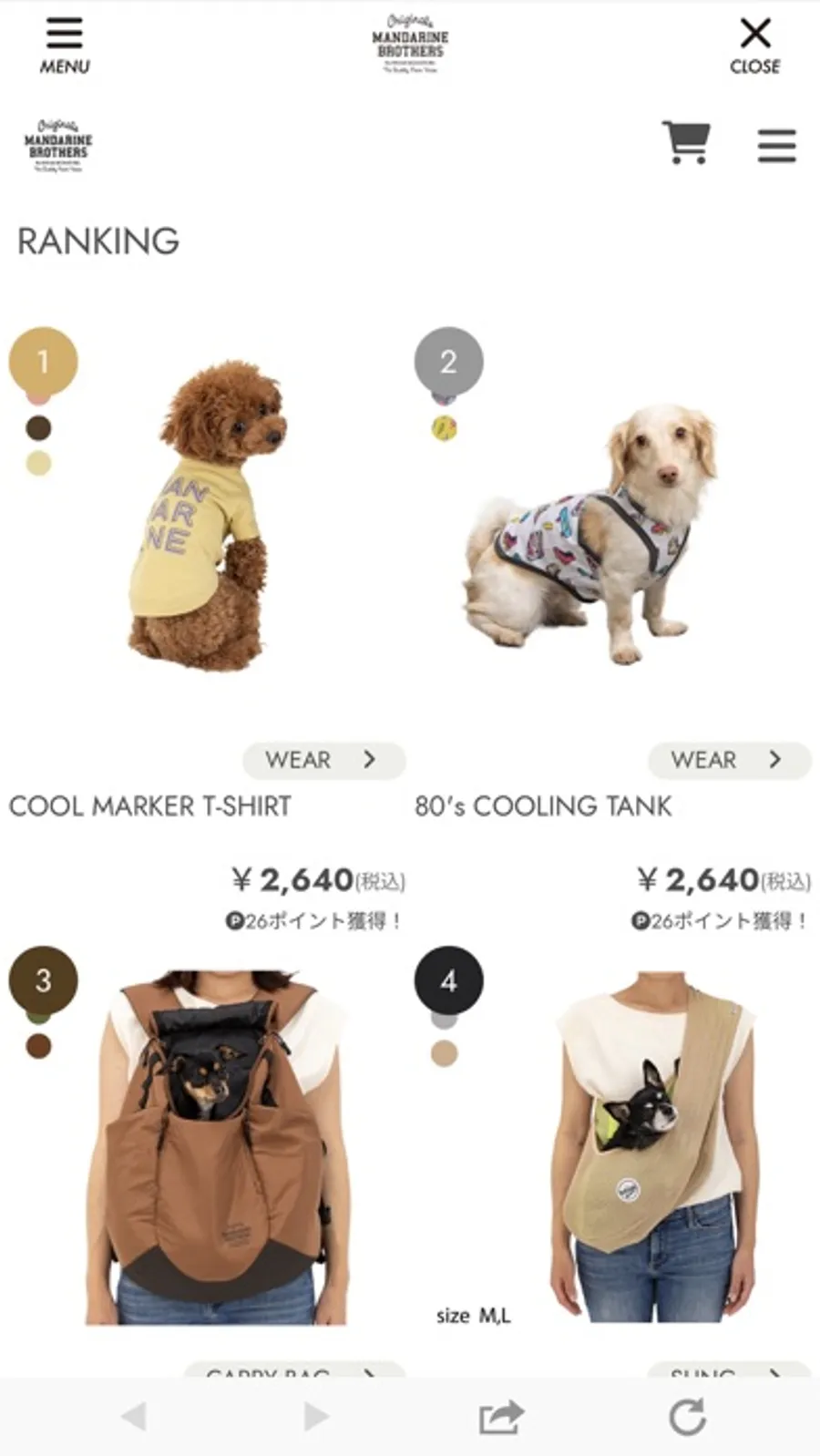 キャリーバッグやウェア、各種トイなどを取り扱っています。