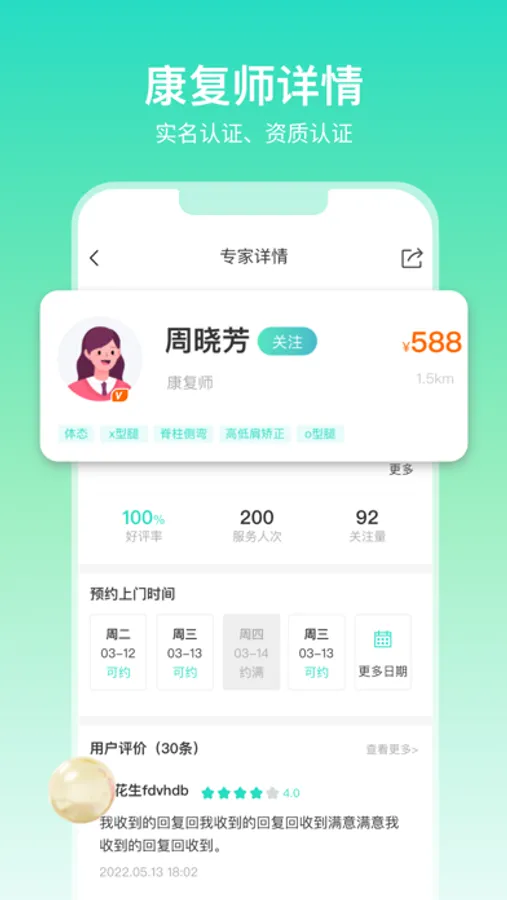 康复师上门:用户可以在软件中预约专业的康复师上门进行康复训练和指导,以达到更好的康复效果。