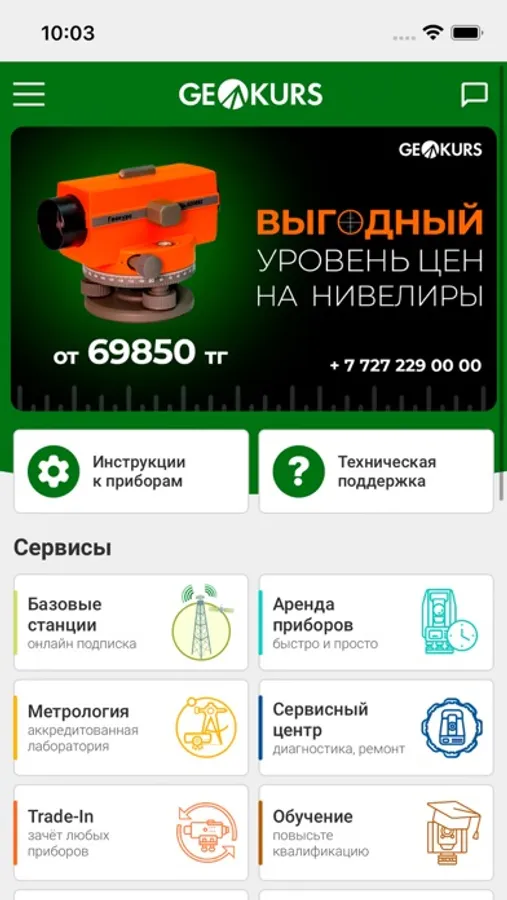 Официальное приложение Geokurs, объединяющее все сервисы компании: