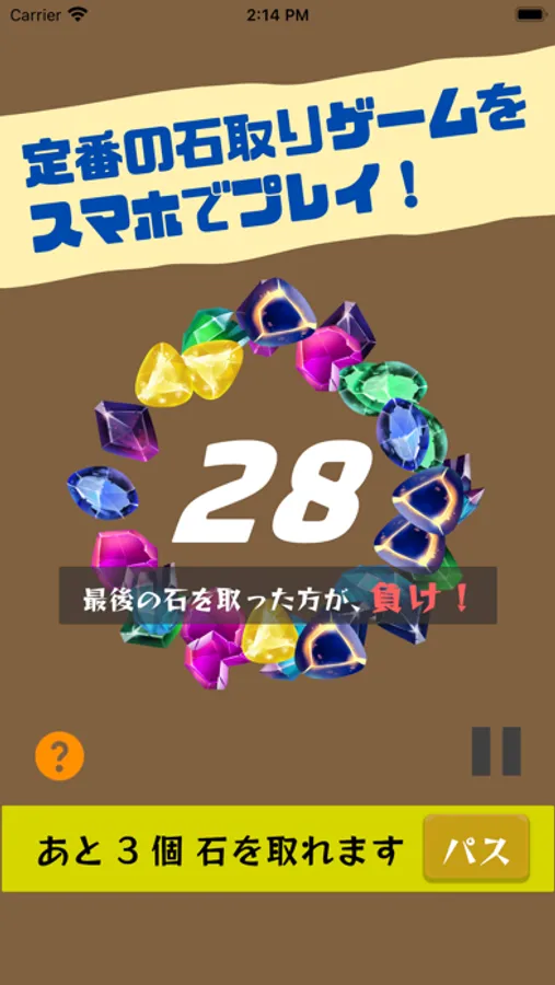 最後の石を取ったら負け(勝ち?)な石取りゲームをスマホゲーム化しました。
