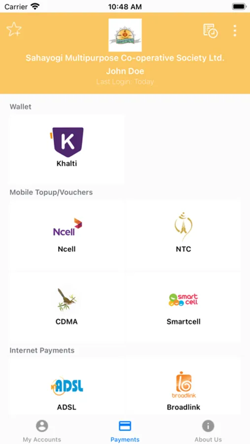 Sahayogi Smart Banking allows its registered users to access their account in a convenient manner. It is secure and is available 24x7. The user can preview their balance, statements, request cheque book, transfer fund and online payments such as mobile topups and internet payments.