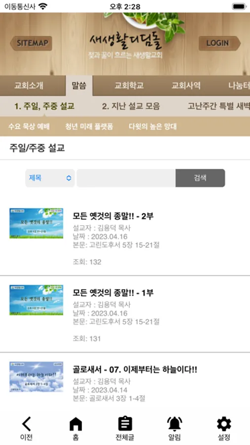 교회사랑넷 앱 고객지원실 : 1661-9106