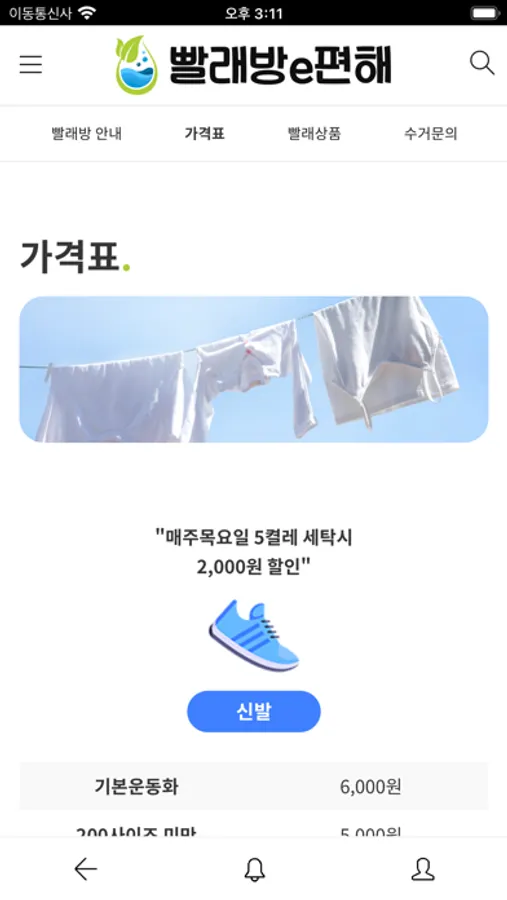양구읍 신발, 이불, 의류 빨래대행 서비스 업체이며 수거 및 배달 가능한 어플로서 가격, 정액권, 수거문의, 결재가 가능합니다.