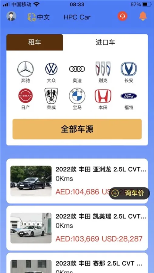 Huipai Car's second-hand car export display, publishing information platform, where you can view the published second-hand cars and publish purchase information