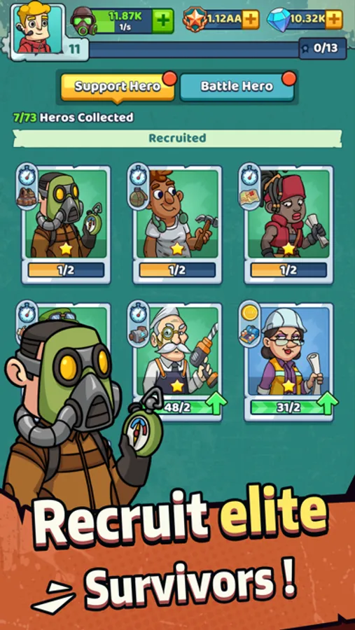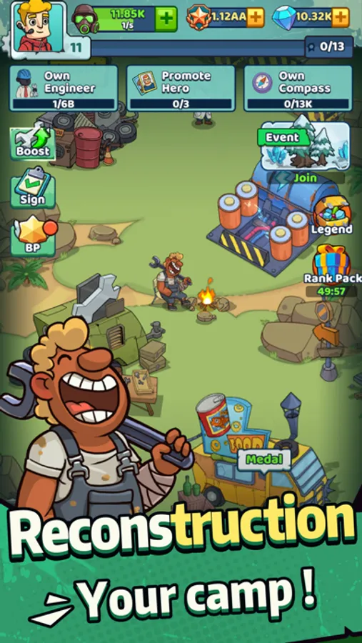 Welcome to " SurvivalAdventure:Idle Clicker", a post-apocalyptic world where as a leader, you need to establish a camp, recruit survivors, and find resources to sustain human civilization.