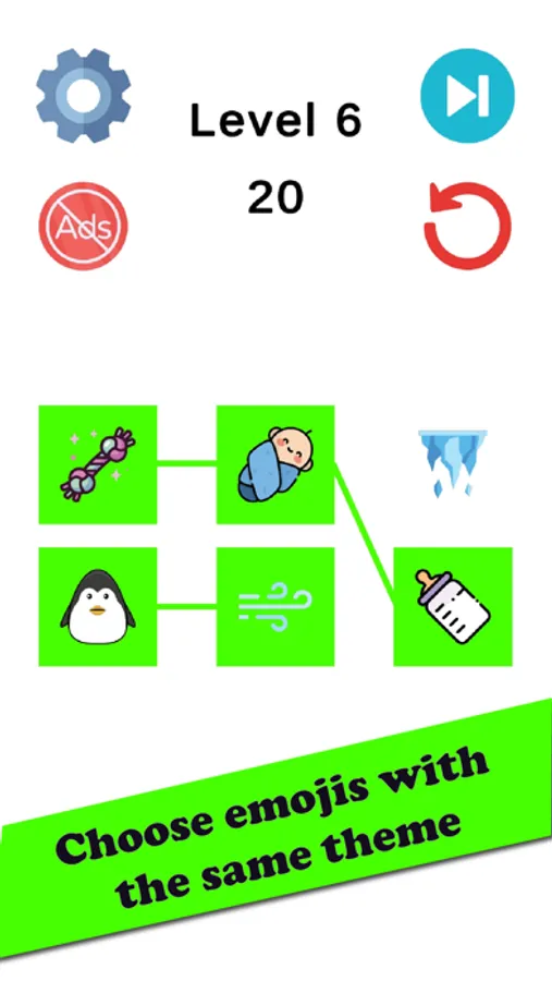 Embark on an exciting puzzle-solving journey with our latest game, immersing yourself in a realm of imagination and discovery. Connect pairs of emojis that share a common theme, unraveling intricate associations between vibrant symbols in this engaging gameplay experience.