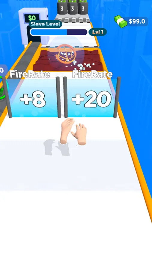 Create stronger sieves by throwing sieve pieces. With stronger sieves, you can extract more valuable metals from muddy areas.