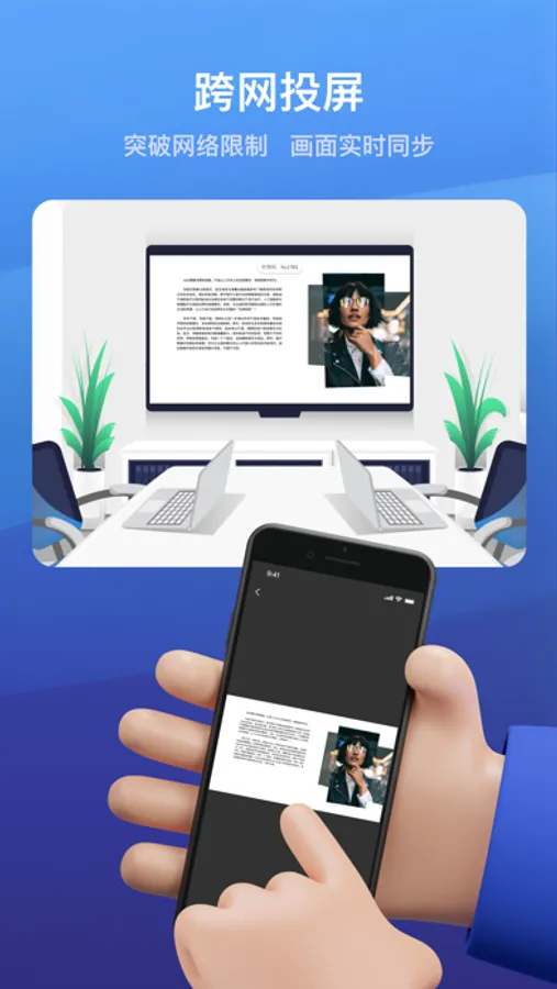 跨网快速投屏,使您带来更高效的远程线上办公、学习。
