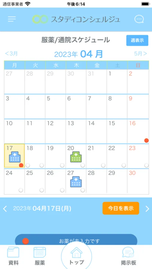 「スタディ・コンシェルジュ™」は株式会社Buzzreachが患者さん向けに提供する服薬・通院管理アプリです。