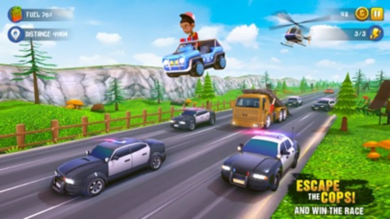 Pick your favorite buggy car from the collection and drive through various tracks. Maneuver your car left or right to avoid crashes and collect coins on the way. Left your opponents behind using nitro boost. Enjoy police chase & patrolling on the highway in this kart race game. Pave your path to victory and become an ultimate race master.