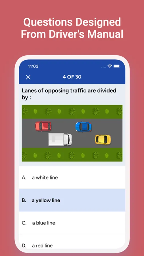 The app includes a practice module that allows to get familiar with questions that fall under different categories like Traffic Rules, Road Signs and Rules of Safe driving. It also keeps track of the progress you have made in each category. It contains questions from following categories: