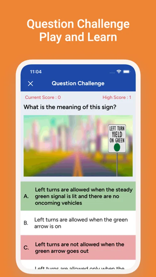 This is a unique feature of our application. It allows you learn while playing a challenge game. Your score will go up by one point each time you correctly answer a question up until the point where you get it wrong. It keeps record of your high score.