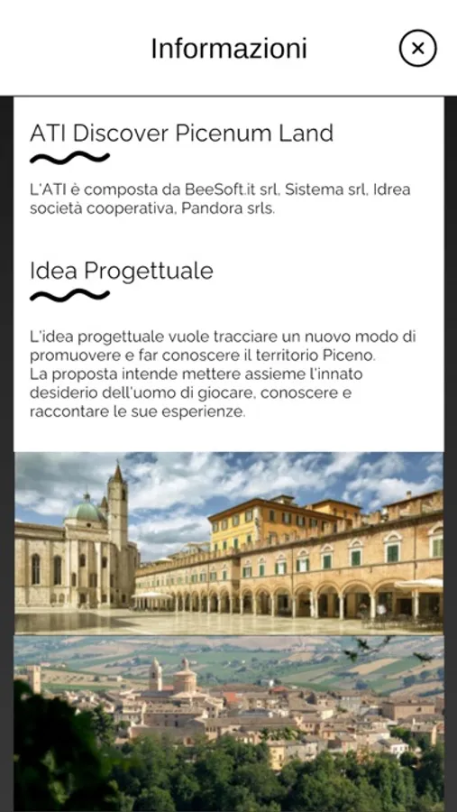 Si tratta di un gioco digitale itinerante che utilizza enigmi, indovinelli e rebus per far scoprire ai giocatori/utenti luoghi meravigliosi e poco conosciuti del territorio Piceno, oltre a suggerire loro sconti e promozioni di prodotti e servizi locali.