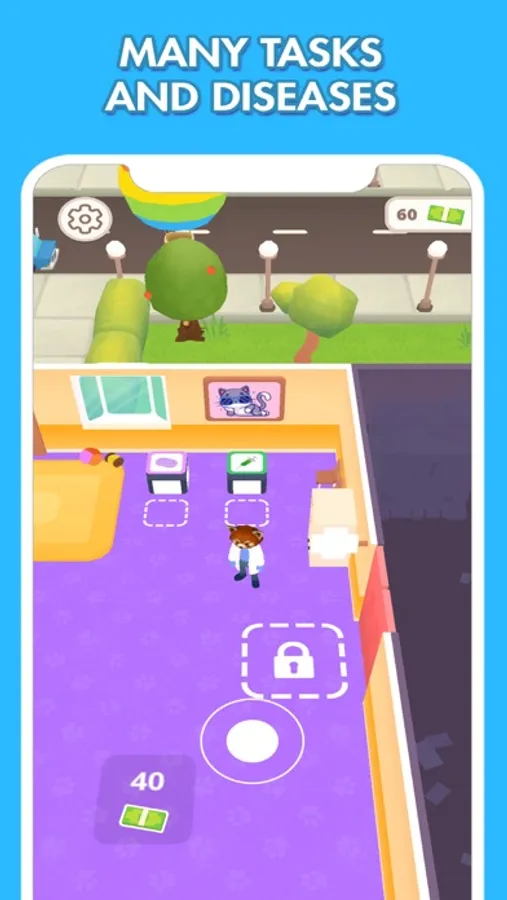 The gameplay is intuitive and easy to navigate, making it suitable for players of all ages. The game features a variety of challenges and upgrades that keep the gameplay fresh and exciting. Players can earn cash by take care of customer pets and use them to upgrade their clinic, buy new medical equipment, and unlock new animals to treat.