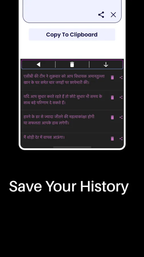 You can save your Hindi text inside application it self. You can use your text for later use too.