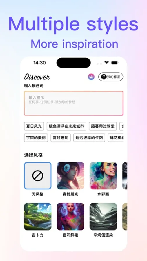 step 1, describe the painting content you want in several groups of words. It doesn't matter if you don't have any ideas. It provides you with fresh inspiration and is worth trying