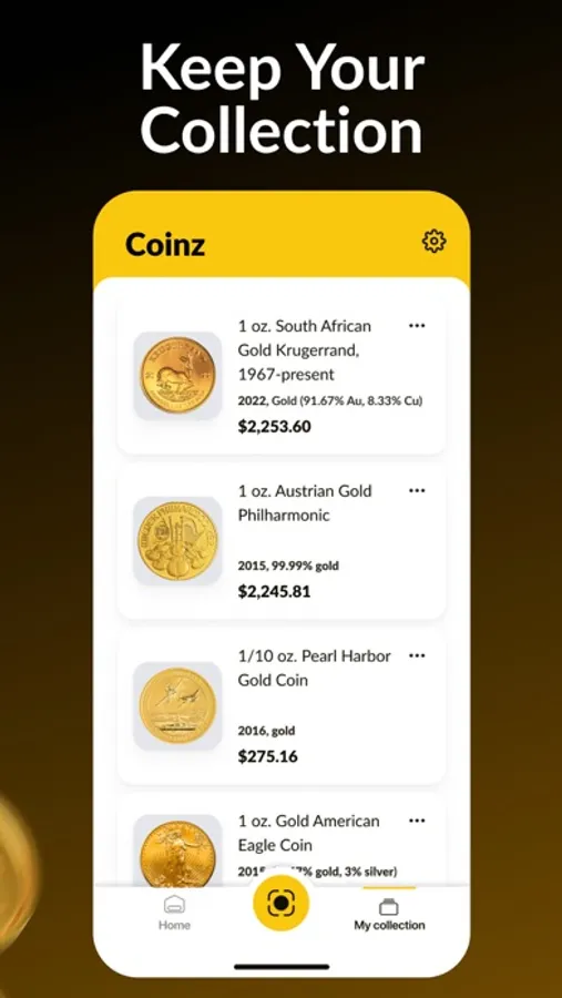 Keep your collection organized and secure with Coinz. Record and store your coins directly in the app, arranging them by series or creating custom collections. Say goodbye to misplaced or forgotten coins!
