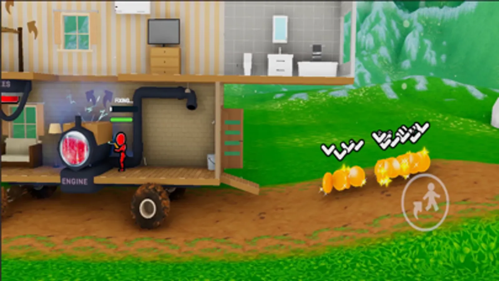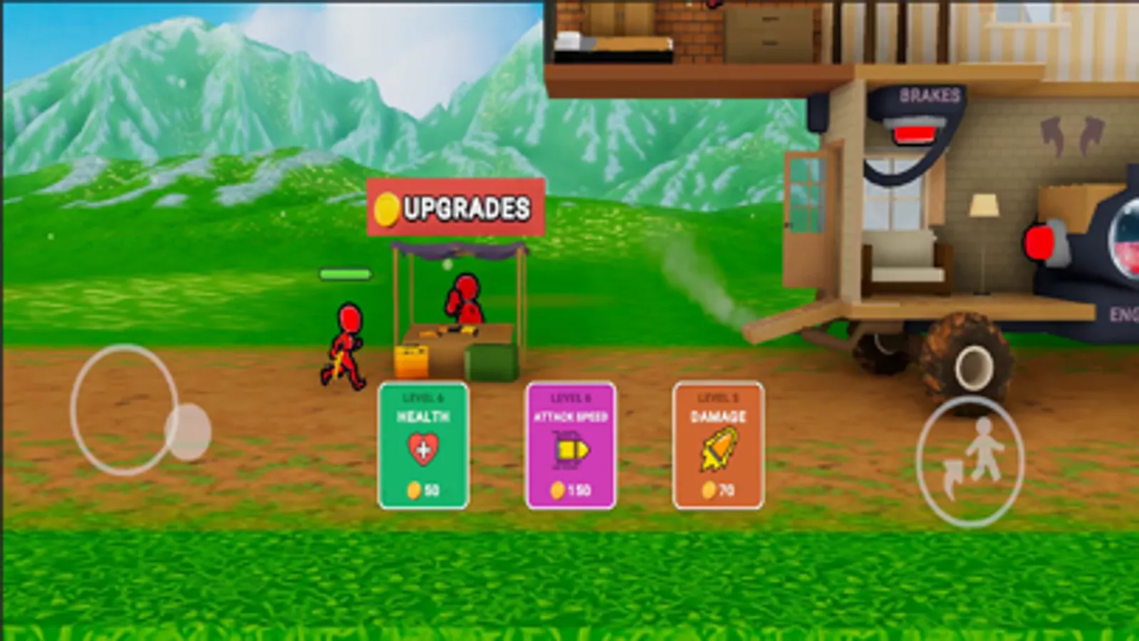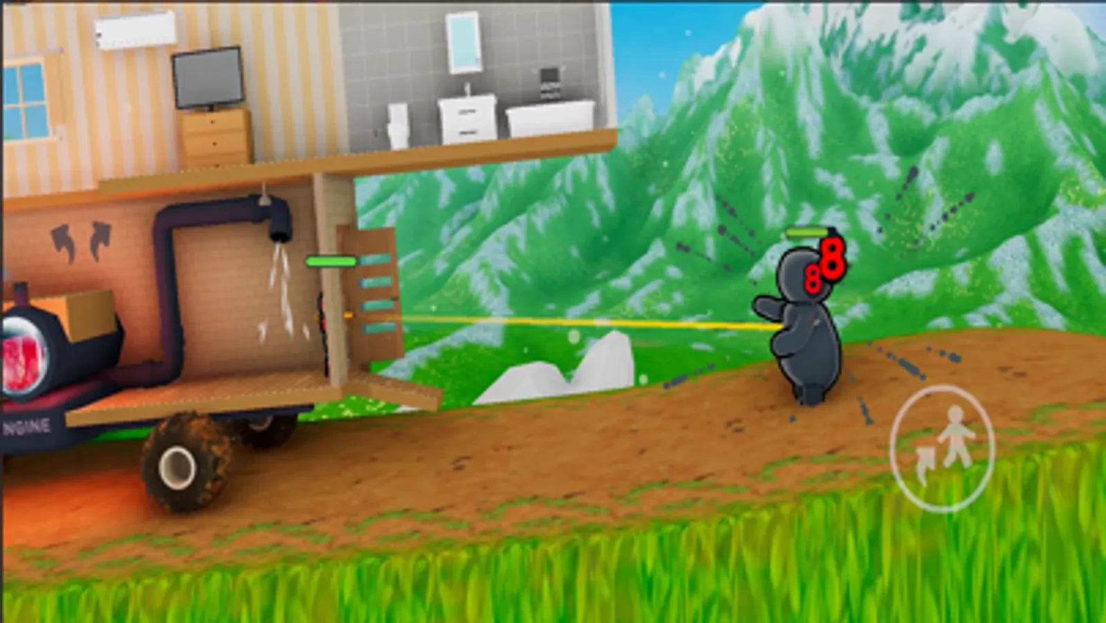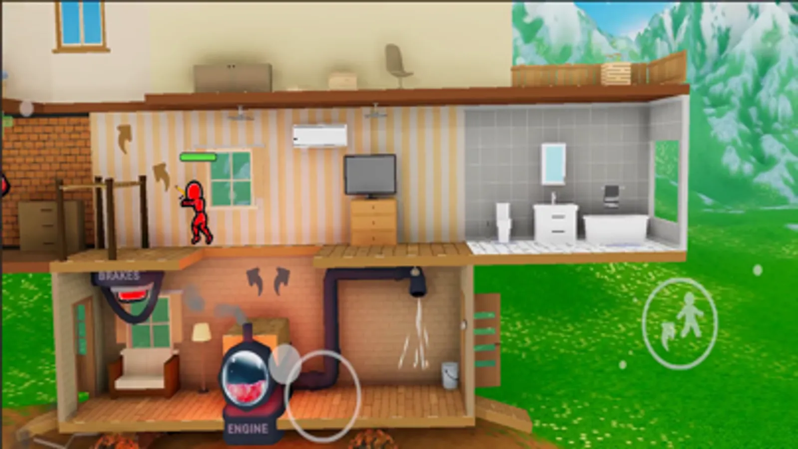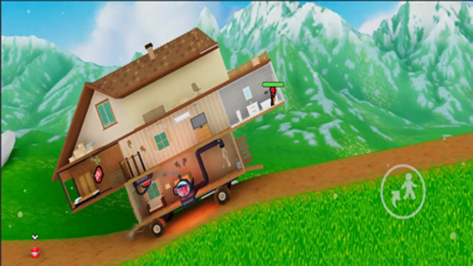 It is a house-on-wheels simulation game! Fuel up your house, start the engine and drive up the hill! But beware of enemies who want to push you back to the start.