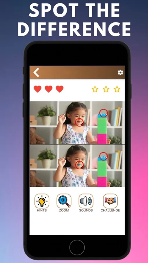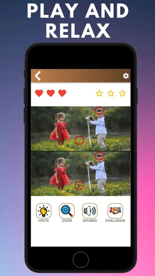 Install Spot the Difference on your device for free, find differences between pictures and finish all levels.