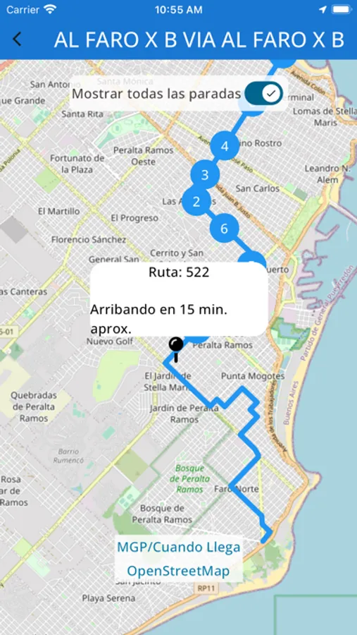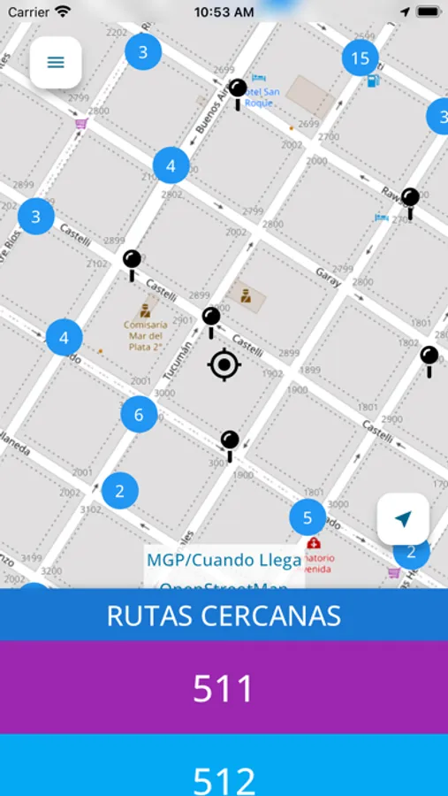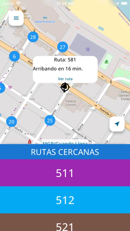Encontrá todas las paradas cercanas usando el mapa interactivo, moviendo el mapa para mostrar las paradas alrededor del indicador central. Consultá el arribo de todas las paradas cercanas al instante, al seleccionar una ruta. En el menú también podés consultar rutas por dirección y sus paradas con respectivos arribos.