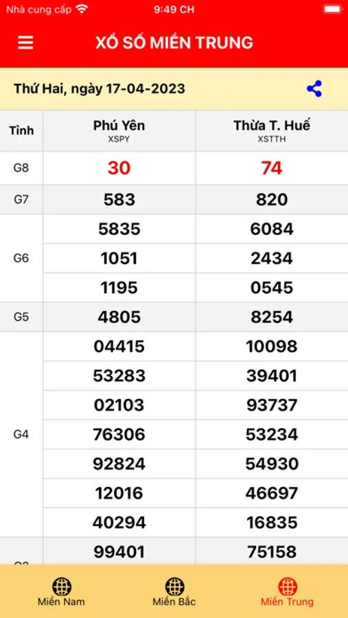 - Thứ 2: Phú Yên (xspy), Thừa T.Huế (xstth)