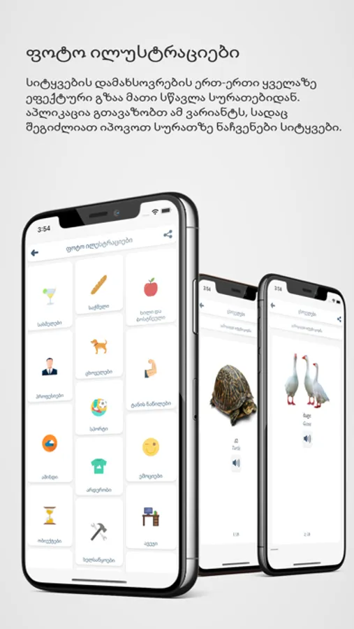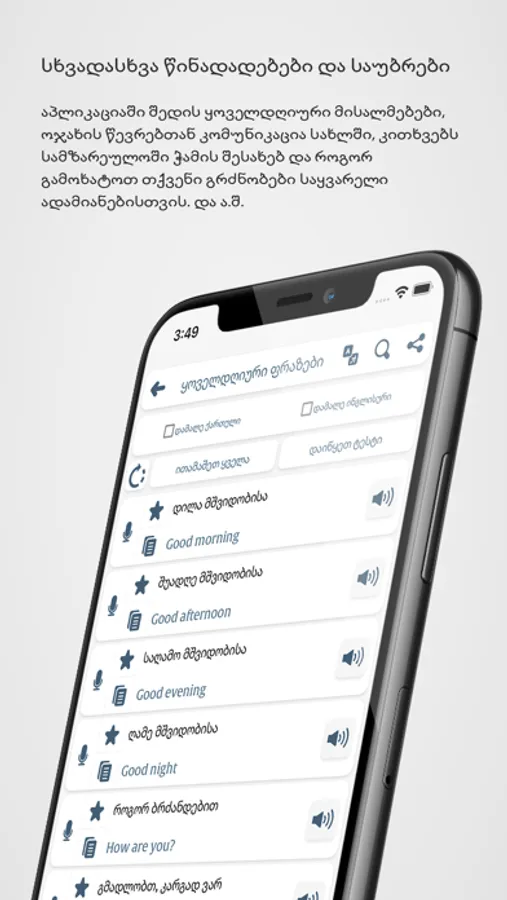 Bilingual dictionary: Our in-app Georgian-English dictionary helps you quickly look up words and phrases.
