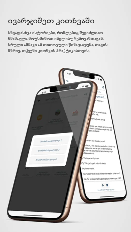 Learn English from Georgian: Our app is tailored to Georgian speakers, making it easy to understand and follow along as you learn English.