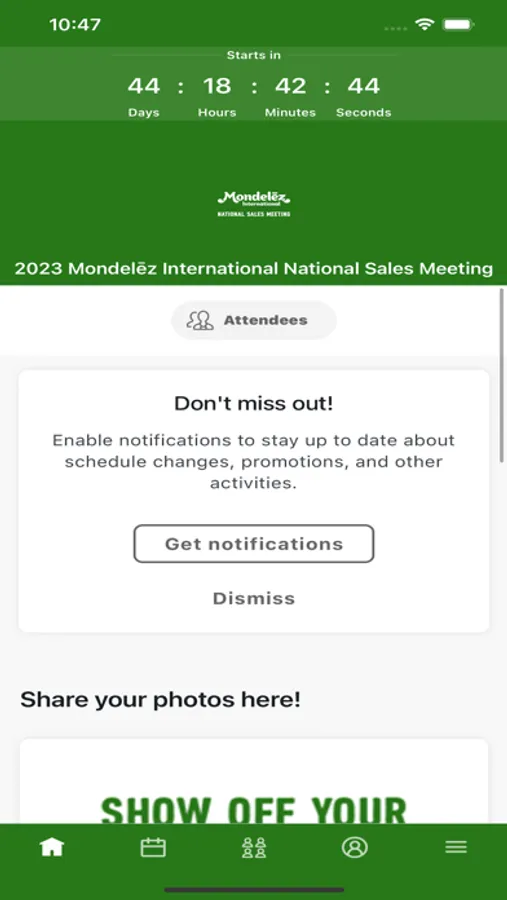 The MDLZ National Sales Meeting connects attendees of the meeting to share content, agenda, location details, and other networking and engagement features.