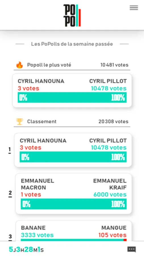 Grâce à PoPolls, rejoins la communauté et propose tes sondages au monde ou vote pour te battre !