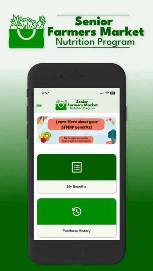 Welcome to the SFMNP Benefits Tracker & Farmers Market Guide, the ultimate companion app for participants of the Seniors Farmers Market Nutrition Program (SFMNP). Whether you're looking to check your benefit balance, find local farmers markets, or view your purchase history, the SFMNP app has you covered.