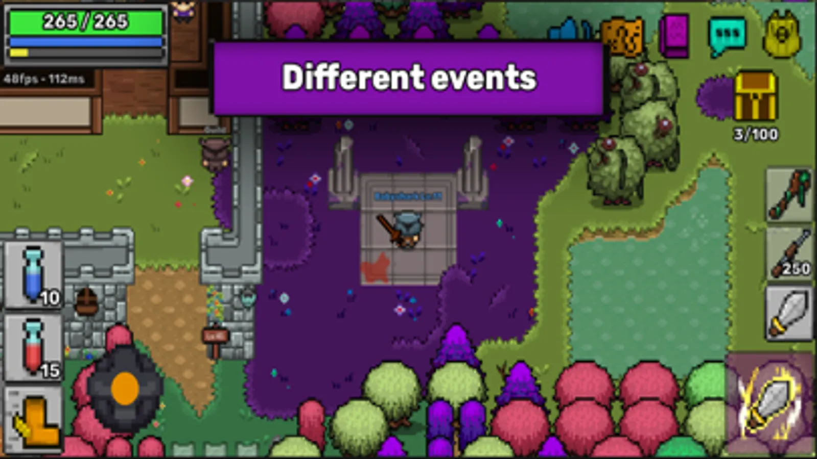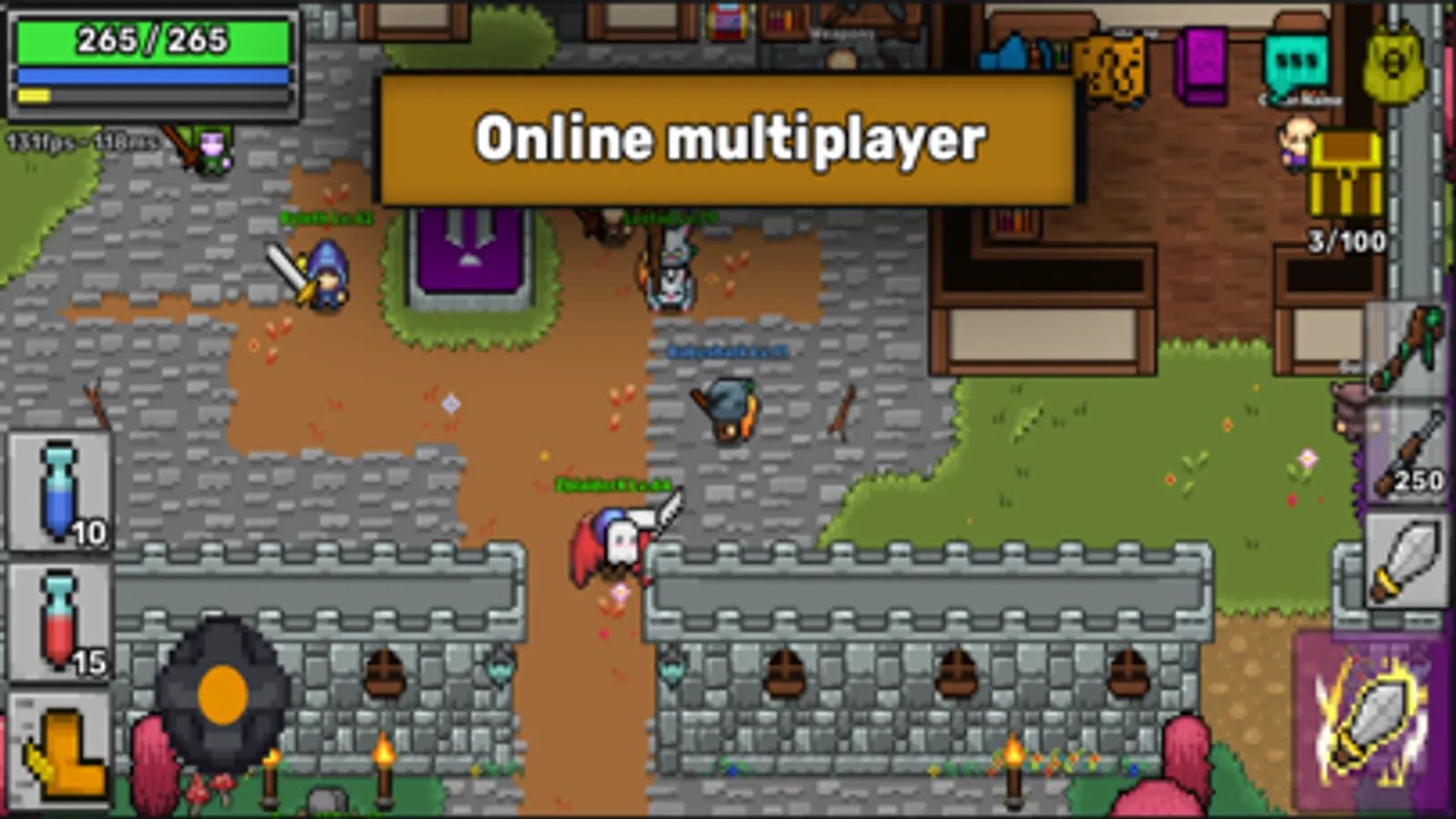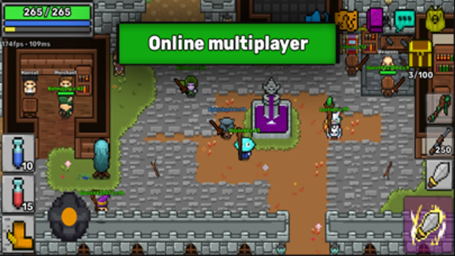 Pixil is a simple 2D Massively Multiplayer Online Role Playing Game (MMORPG) easy to learn where you can fight monsters with your friends in real time open online world with fantastic pixel art.