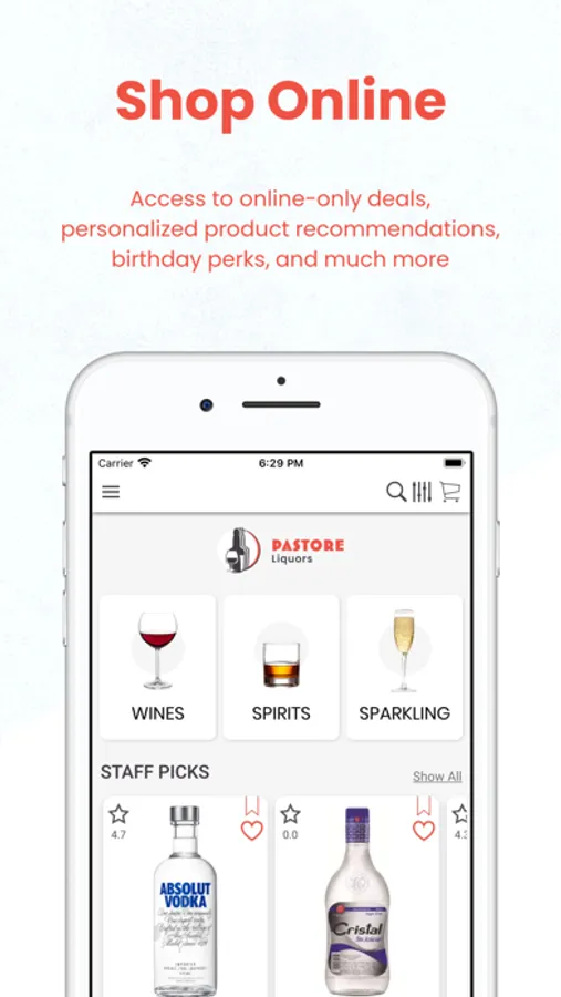 With the App you can browse for the wines & spirits available in the store, and also order a delivery or pickup.