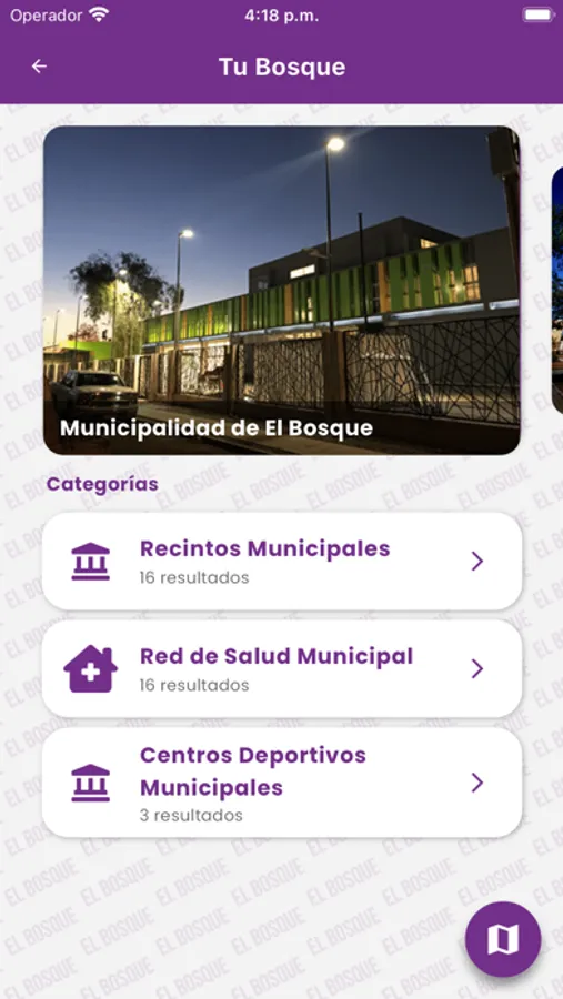 El Bosque APP es una aplicación donde los vecinos de la comuna de El Bosque podrán ver los servicios, contactos, lugares de interés, noticias y actividades que se encuentran en la comuna.