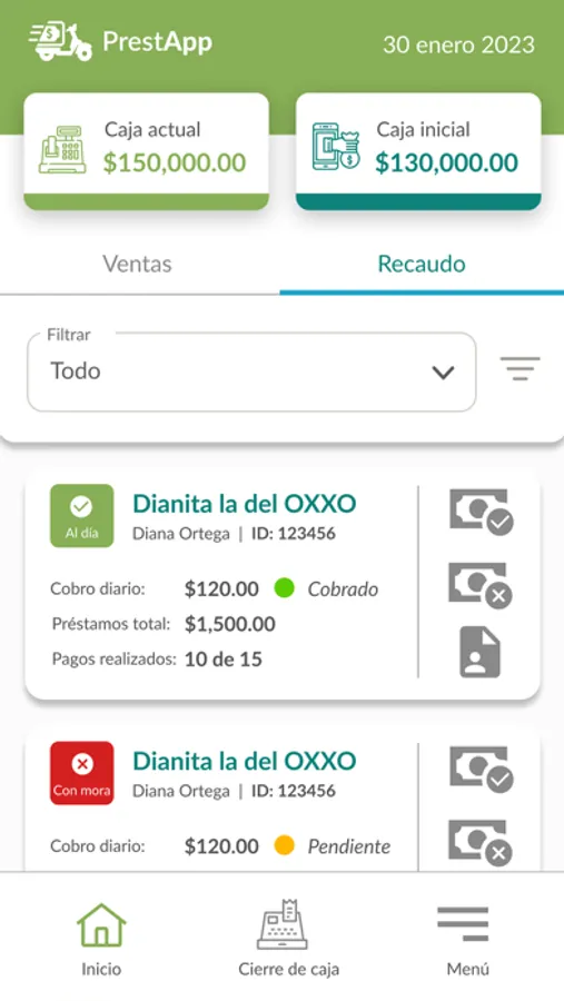 manera que se pueda controlar la cobranza de esos prestamos (clientes nuevos y/o existentes), el flujo que se esta