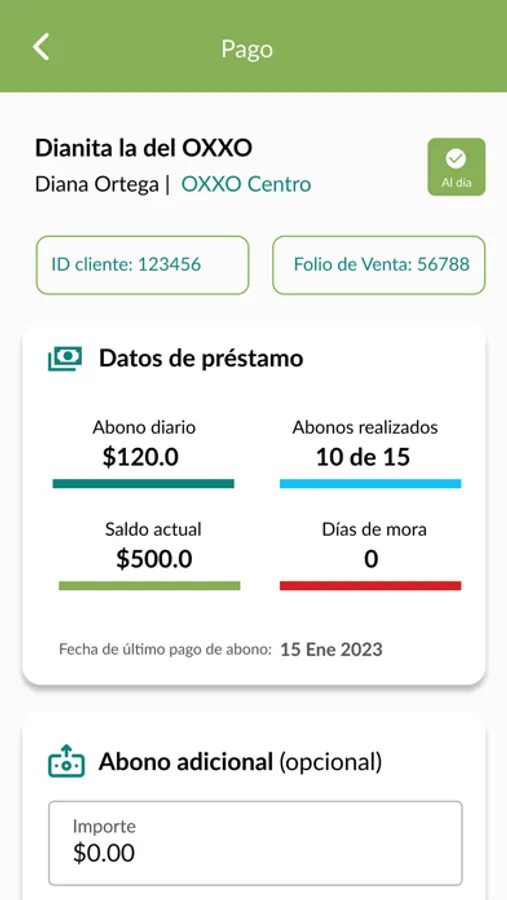 La aplicacion permite el control y detalle de prestamos que se colocan de forma individual, de
