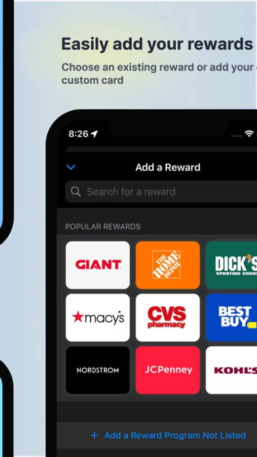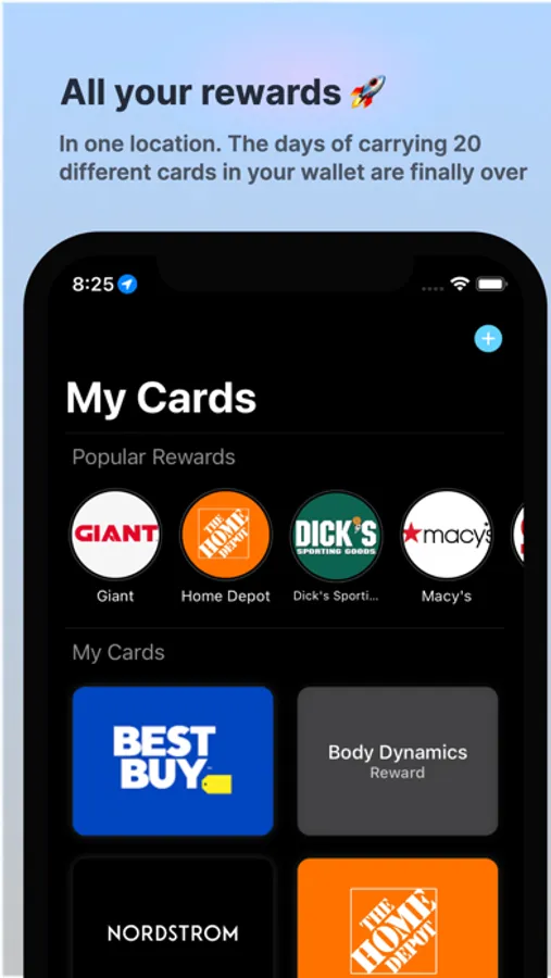 SCAN & STORE: Easily scan barcodes and QR codes from all your favorite rewards programs. Our app securely saves them in one convenient spot, so you can leave your physical cards at home.
