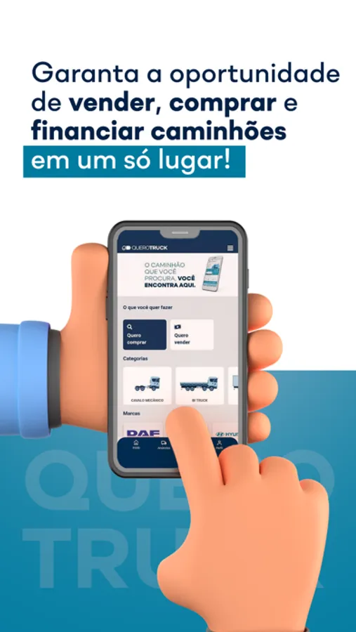 QueroTruck é uma plataforma digital completa e prática criada para facilitar a vida do mundo truck. Nosso objetivo é preencher as lacunas existentes no mercado atual de intermediação de venda de caminhões novos e seminovos, bem como acompanhar todos os passos do cliente com o nosso clube de benefícios que está a caminho.
