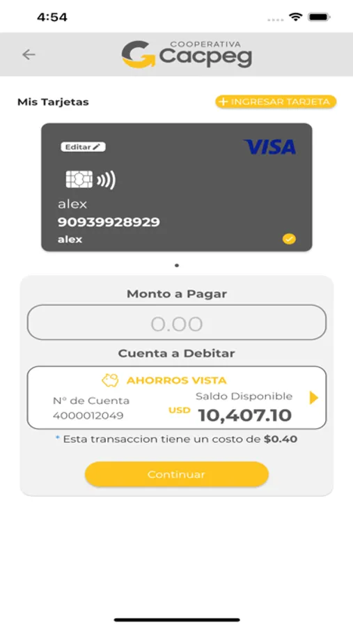 Aplicativo móvil transaccional Cooperativa Cacpeg.