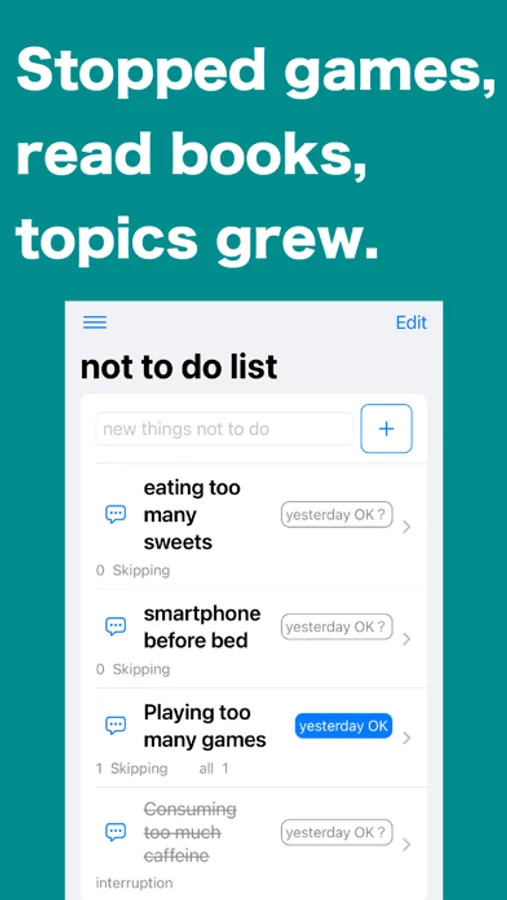 Introducing "Skip," an app that lists things you want to quit, opposite of a ToDo list.