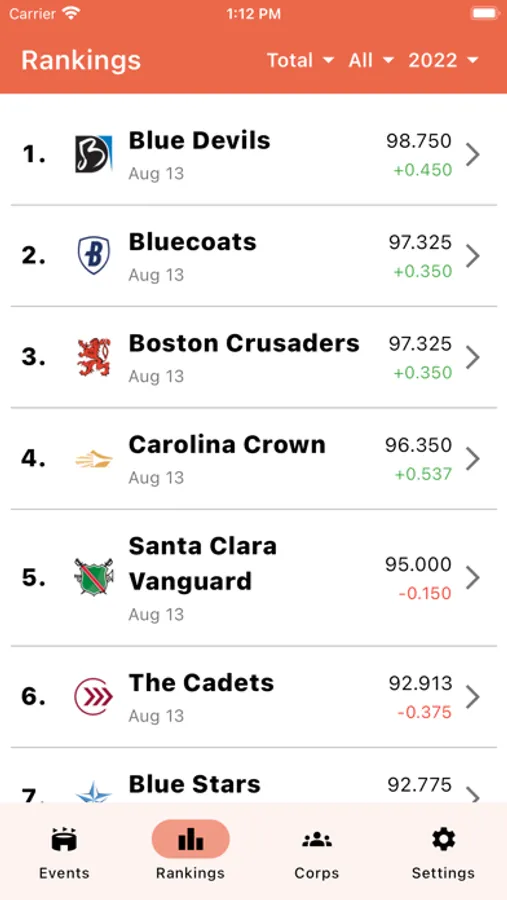 Browse through past and future competitions, scores, and corps. With real-time updates as scores are released, you'll never miss a beat!